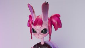 Das Thema der Arbeit lautet Fantasy Rockstar. Dafür wurde ein Designentwurf in Clip Studio Paint angelegt. Ich wollte einen kleinen aber frechen Charakter erstellen. Um die Fantasy-Elemente einzubringen, habe ich ihr zwei Hasenohren und ein Schneckenhaus gegeben.